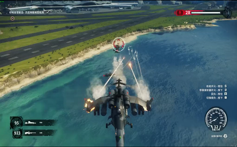 接下来咱们来试一下第二架直升机,我们下飞机来找到第二架,第二架大小跟第一架差不多,来我们看一下他叫侦察攻击直升机,这架直升机配备了两把加特林,总共1,000发子弹,让我们看看效果怎么样,虽然机关枪听着不如导弹厉害,但是他子弹数更多,容错率更高,射速更快而且威力也不小,20发子弹就可以摧毁一架直升机,因此在我看来,这架直升机要比刚才的幽灵攻击直升机更好用。